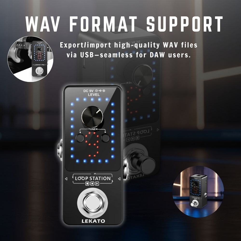 The LoopWave Mini X9 Looper Pedal is your all-in-one looping solution, combining portability with professional features. With 9 loop slots and up to 40 minutes of total recording time, you’ll never run out of creative space. Export your tracks in lossless WAV format, or import your own loops to jam with ease.