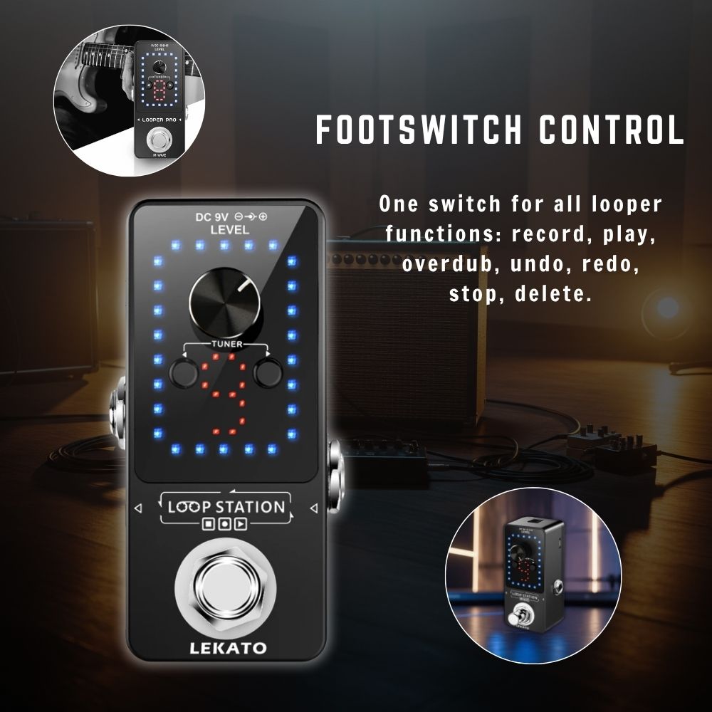 This compact powerhouse features true bypass, ensuring zero tone loss, and a built-in tuner to keep you in pitch on stage or in the studio. The colorful LED screen provides instant visual feedback, and all looper functions are handled through a single intuitive footswitch.